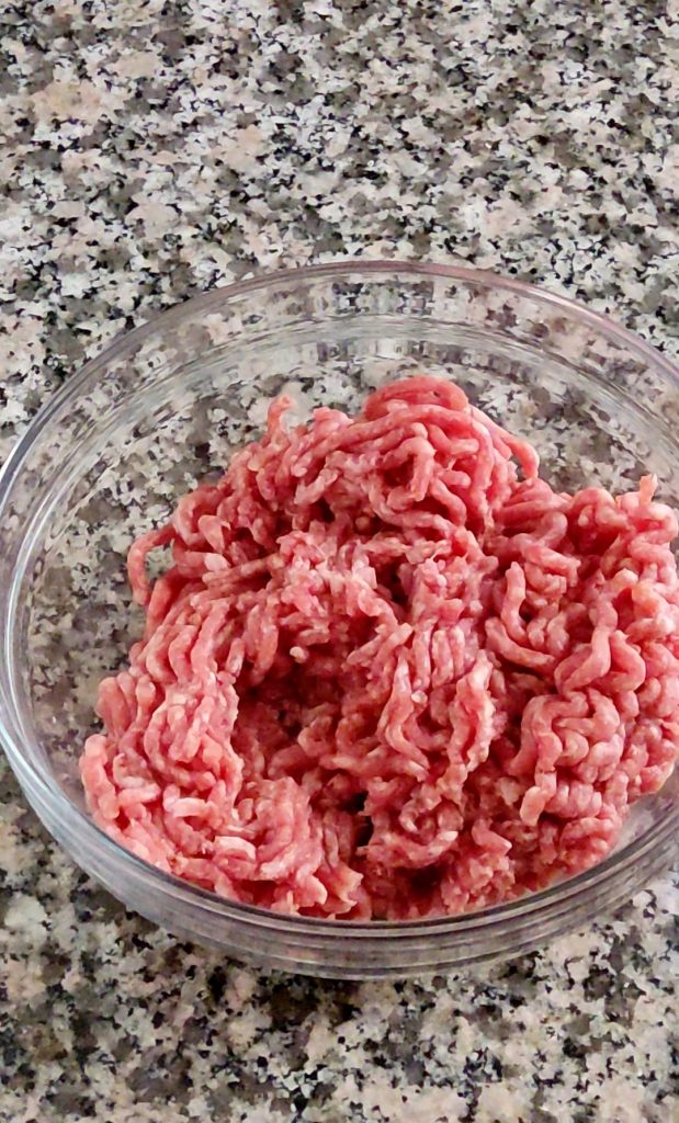 Versez la viande hachée mixte dans un bol. Ajoutez une pincée de sel et une pincée de poivre.