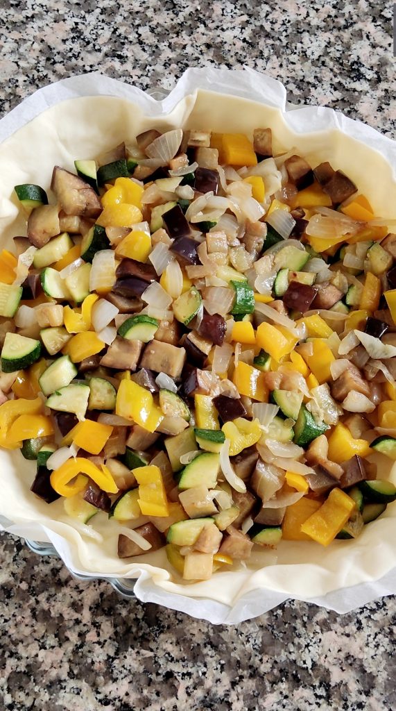 Tarte rustique aux légumes savoureuse et délicieuse. Les Tartes salées toujours différentes et toujours spéciales sont toujours une solution pour le dîner parfaite. Il suffit d’un rouleau de pâte feuilletée, qui ne doit jamais manquer dans le frigo, et des ingrédients que nous avons pour préparer une Tarte salée toujours différente et toujours spéciale. La Tarte salée avec les légumes que je veux vous raconter aujourd’hui a une garniture d’aubergines, courgettes, poivrons et tomates cerises. Le résultat est celui d’une Tarte rustique aux légumes délicieuse. Parfaite comme un second plat, mais aussi comme une entrée savoureuse et spéciale pour une solution de dîner exquise et pour utiliser de nombreux légumes différents que nous trouvons dans le tiroir de notre frigo. Je vous assure qu’avec cette Tarte salée de légumes, vous convaincrez tout le monde de manger des légumes! Allons en cuisine et préparons ensemble la Tarte salée avec aubergines et poivrons