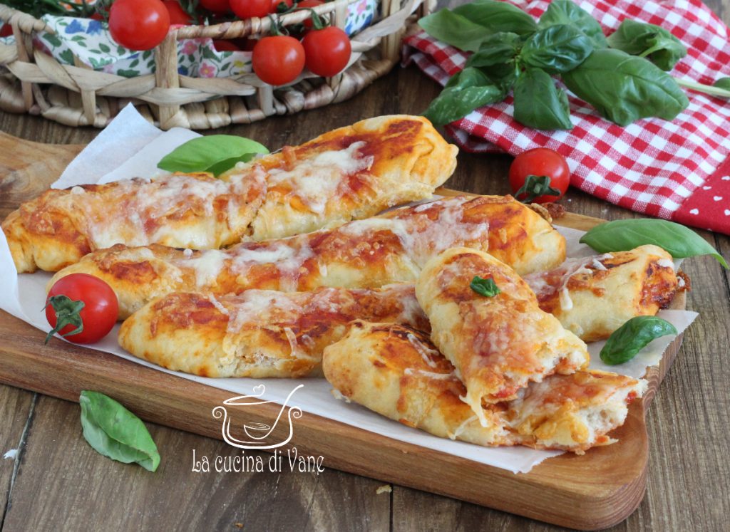 Ces LANGUES DE PIZZA FARCIES AVEC TOMATE ET MOZZARELLA sont la recette gourmande du jour, pour préparer avec la pâte à pizza des fouets moelleux de pizza farcis de tomate et mozzarella et garnis également sur le dessus avec cette délicieuse garniture. Très moelleuses et au cœur super fondant, ces langues sont parfaites pour être préparées pour mille occasions, à servir à table avec la classique pizza maison, pour un goûter salé gourmand, mais elles sont aussi parfaites à emporter lors d’une sortie. Elles se présentent comme de longs pains de pizza très moelleux qui cachent dans leur garniture un cœur fondant et gourmand. Les langues de pizza restent très moelleuses même le lendemain, il suffira de les réchauffer au four quelques minutes pour les retrouver fondantes à l’intérieur et à l’extérieur. Préparer les langues de pizza farcies est très simple, tu peux utiliser la pâte à pizza déjà prête mais je te conseille de la faire toi-même à la maison, c’est vraiment très facile et le résultat sera de loin bien meilleur. Suis-moi dans la recette et préparons ensemble les langues de pizza farcies avec tomate et mozzarella et REGARDE LA VIDÉO RECETTE SUR MA CHAÎNE YOUTUBE.