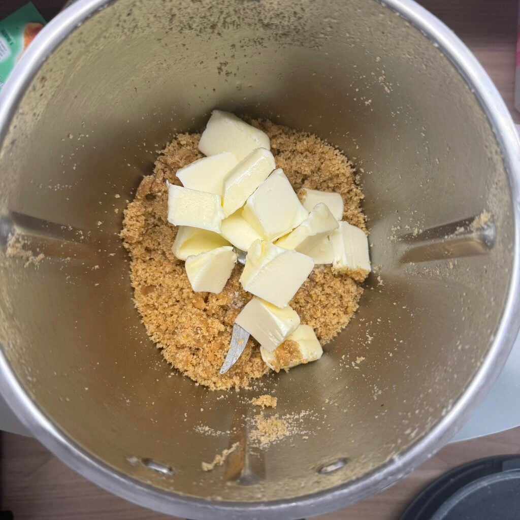 Ajoutez le beurre en morceaux, la farine et la vanilline : 2 minutes vitesse 5-6.