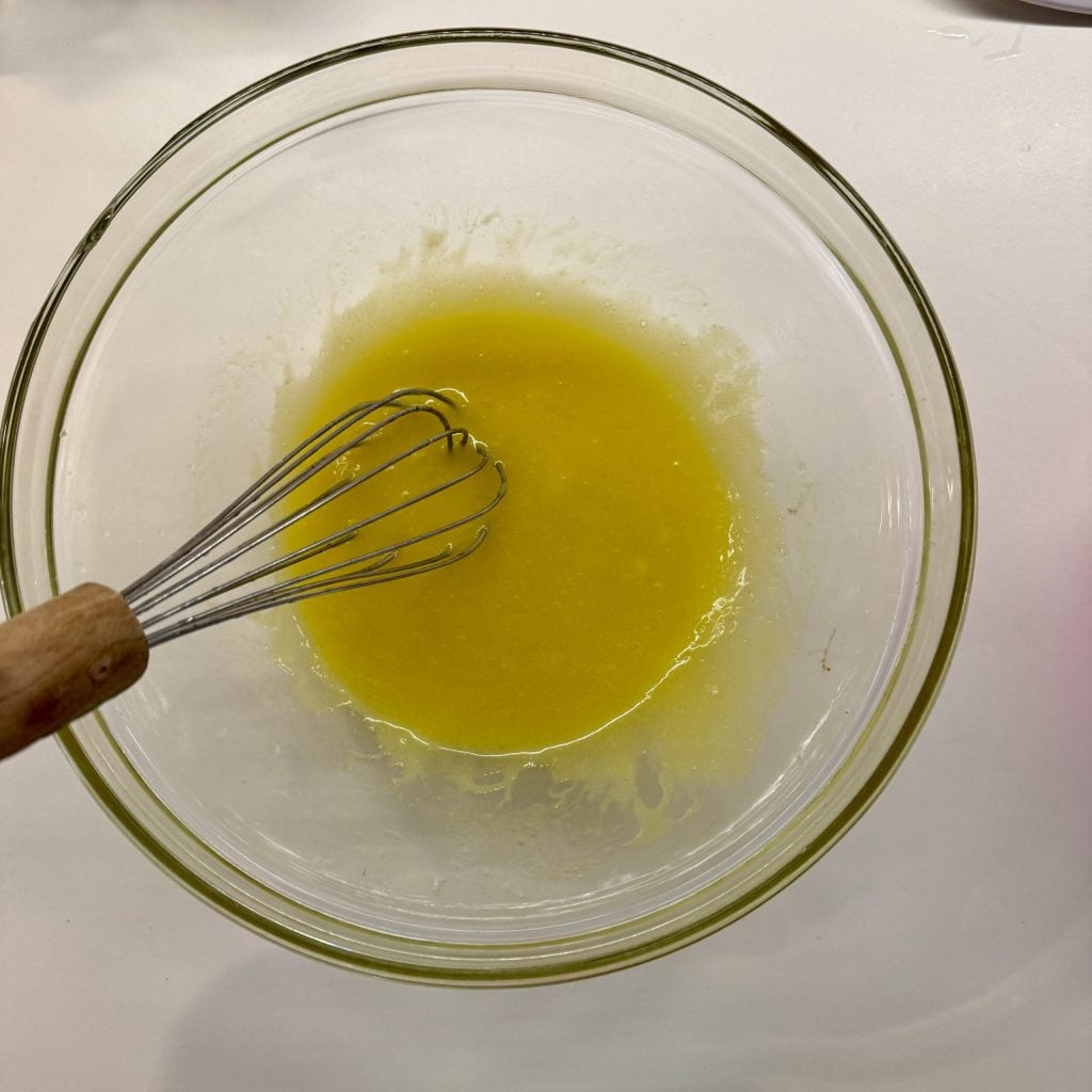 et l’huile. Mélangez vigoureusement avec un fouet à main pour émulsionner les ingrédients.