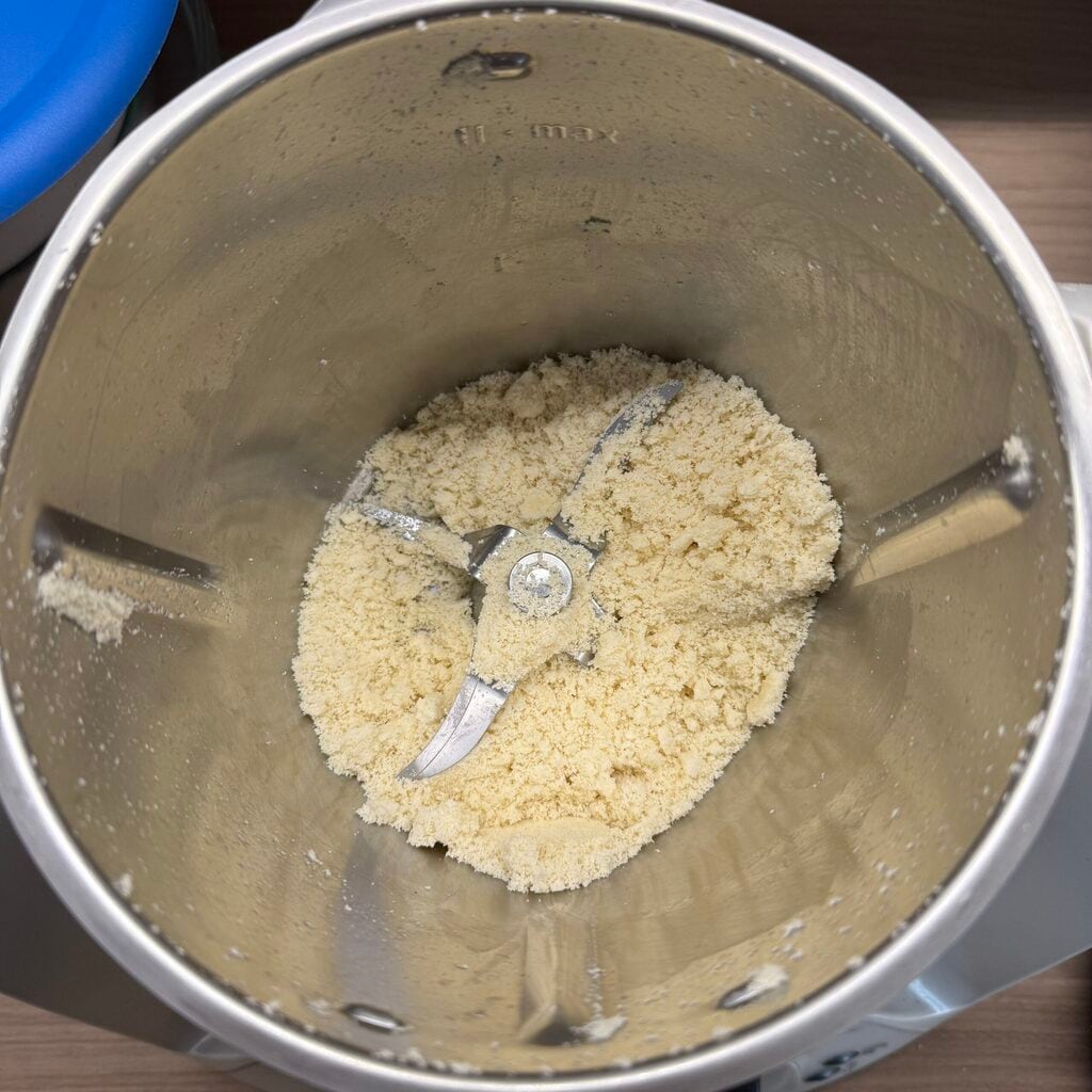 Si vous n’avez pas de farine d’amandes, vous pouvez également utiliser les amandes émondées (comme je l’ai fait) et les hacher finement avec le Thermomix ou avec tout autre robot culinaire ou hachoir.