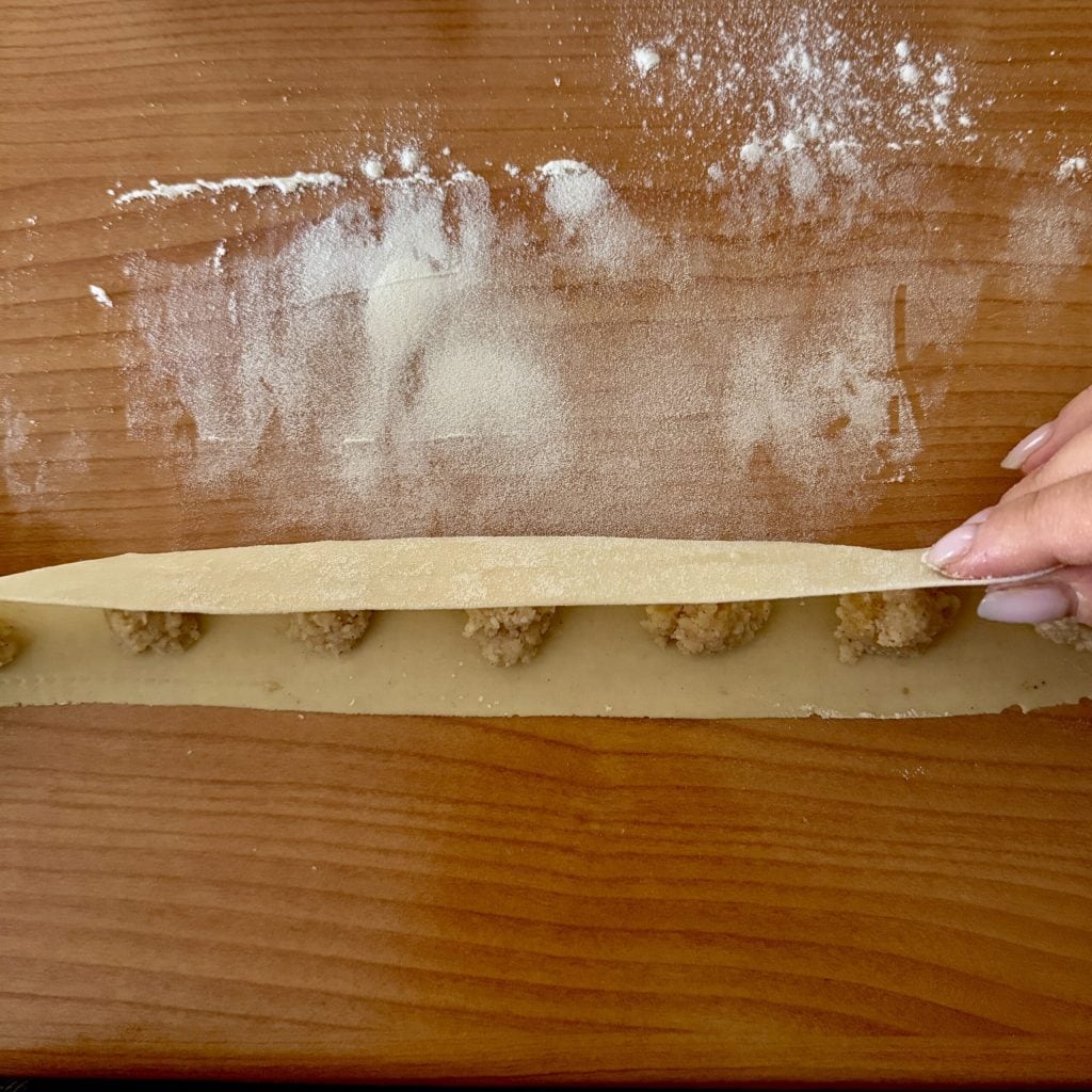 Voyons ensemble toutes les étapes pour préparer les calzoncelli des Pouilles. Je vous recommande de préparer la farce un jour à l’avance, car avec le repos, les saveurs se mélangent mieux.