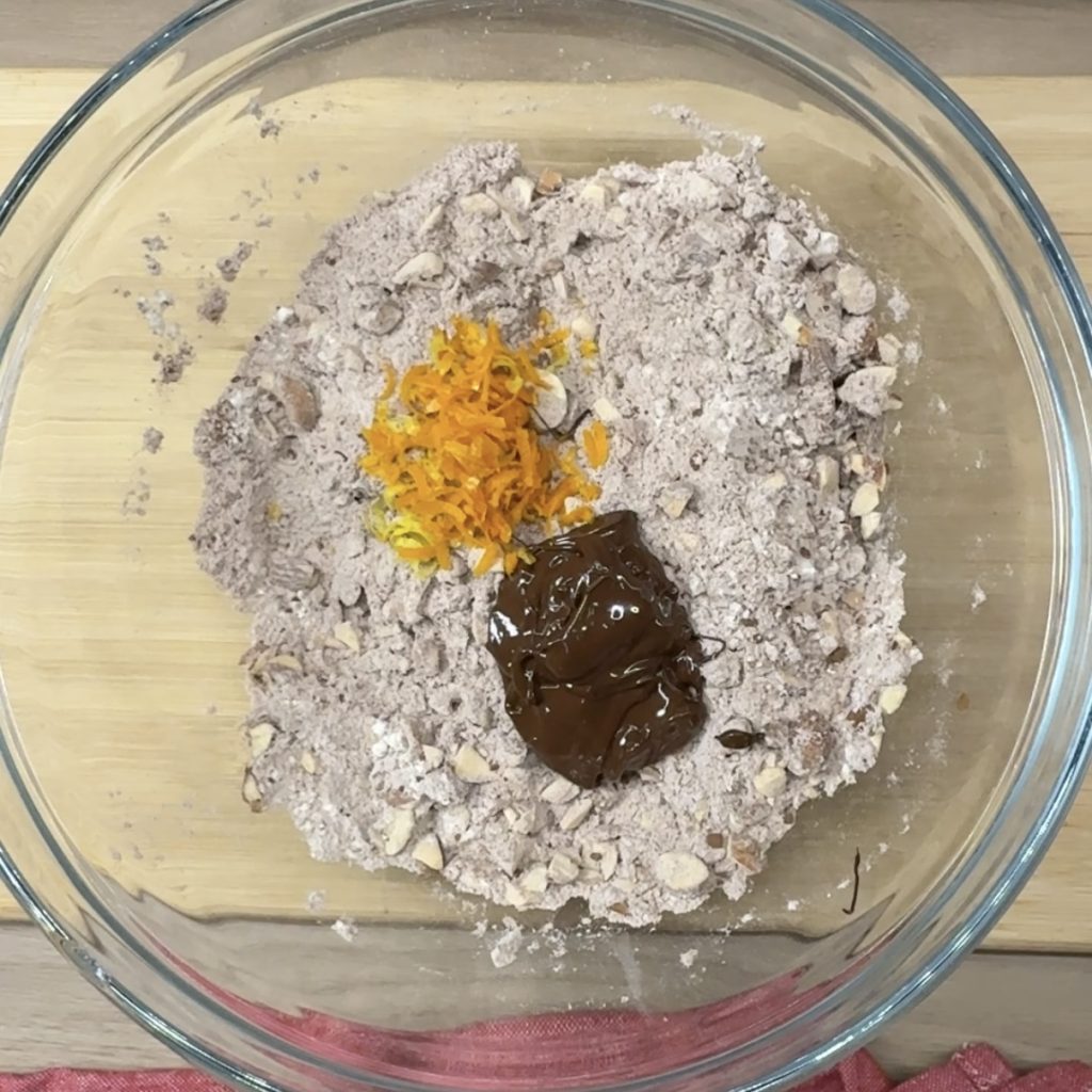 Préparez d’abord les ingrédients dont vous aurez besoin pour préparer les castagnelle. Faites griller les amandes pendant environ dix minutes à 150°C. Si vous le souhaitez, vous pouvez également les griller à la même température et pendant le même temps dans la friteuse à air.