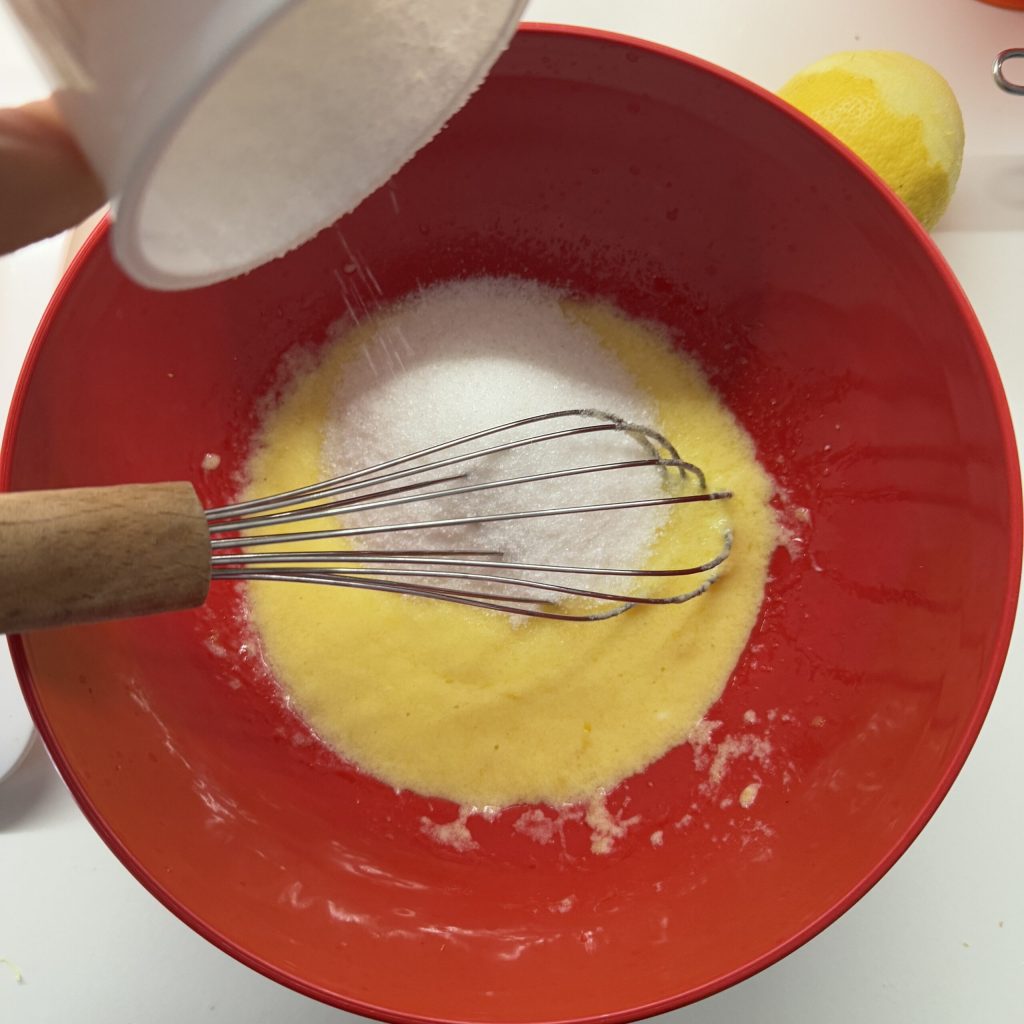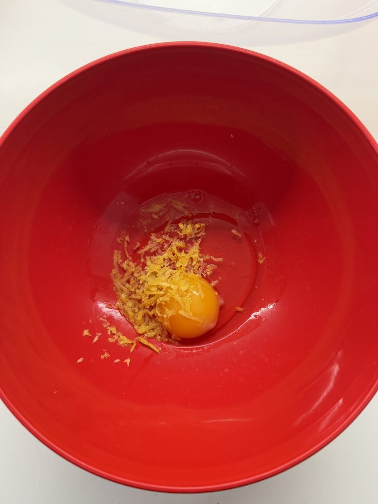 Dans un bol, cassez un œuf et râpez le zeste d’un citron (bio), en veillant à ne pas râper la partie blanche de la peau, car elle est amère.