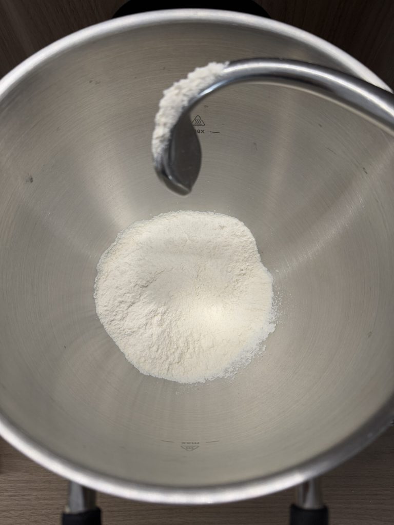 Commencez à pétrir les ingrédients pendant quelques minutes à basse vitesse avec le crochet.