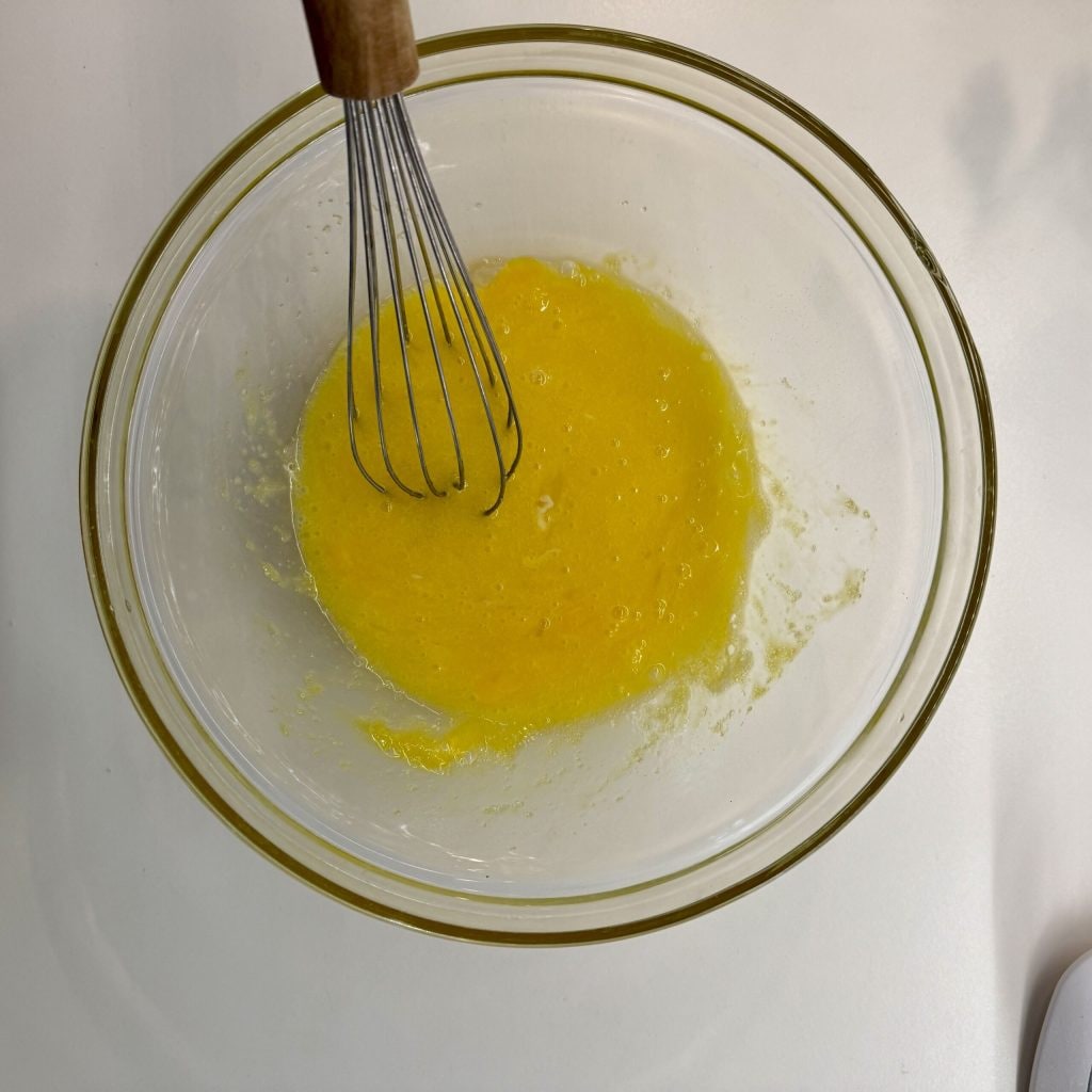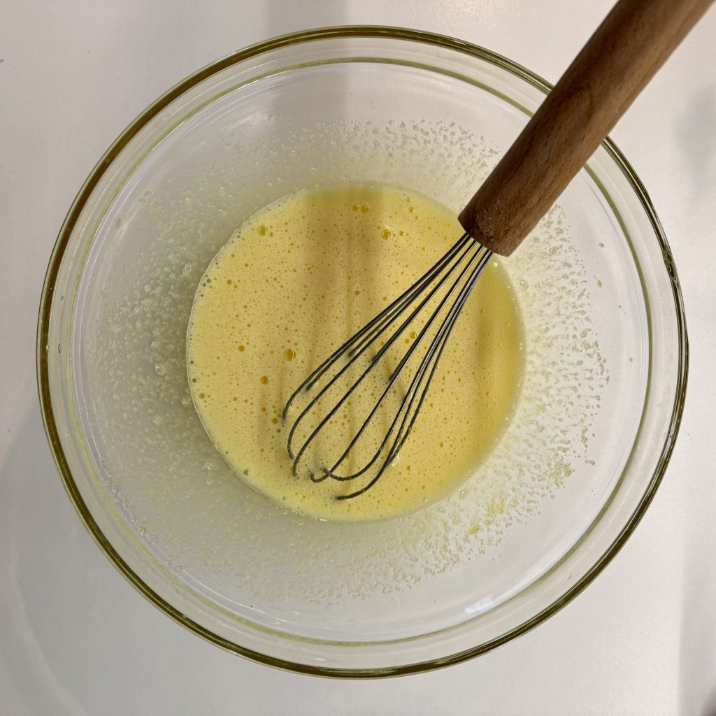 Mélangez énergiquement avec un fouet à main pendant quelques minutes les ingrédients.
