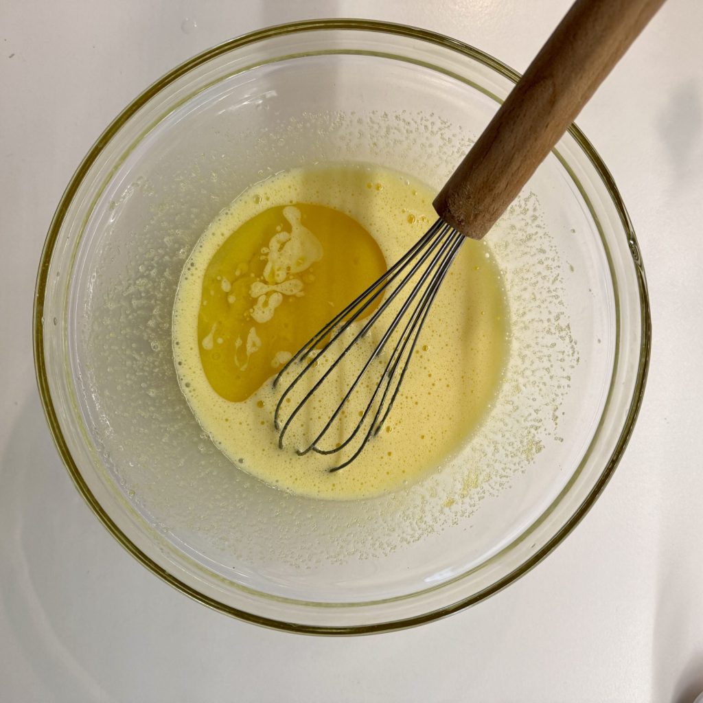 Voyons d’abord la méthode traditionnelle, qui est aussi la plus pratique. Vous n’utiliserez qu’un bol et un fouet à main. Rien ne vous empêche, cependant, d’utiliser aussi un fouet électrique si vous le souhaitez.