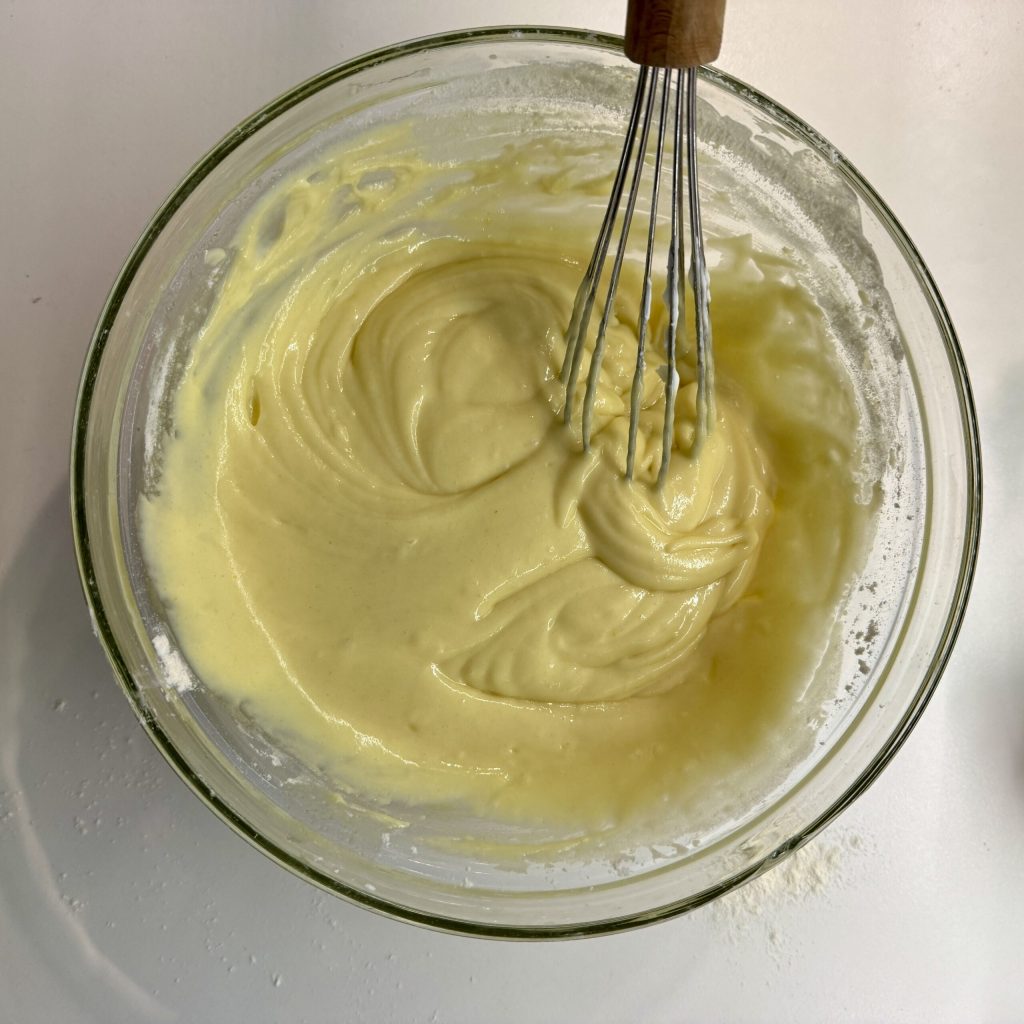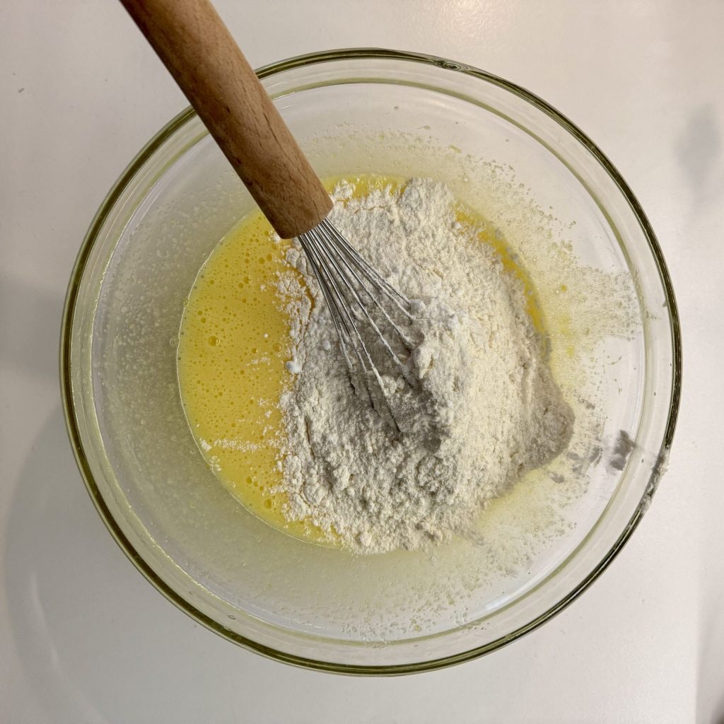 Mélangez encore le mélange jusqu’à ce que la farine soit bien incorporée.