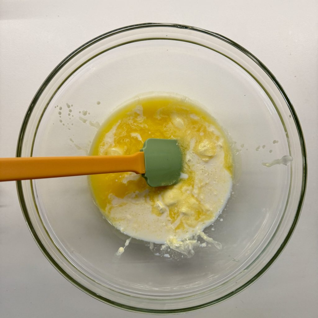 Transférez-le dans un bol avec le lait. Mélangez avec une spatule pour amalgamer les ingrédients.