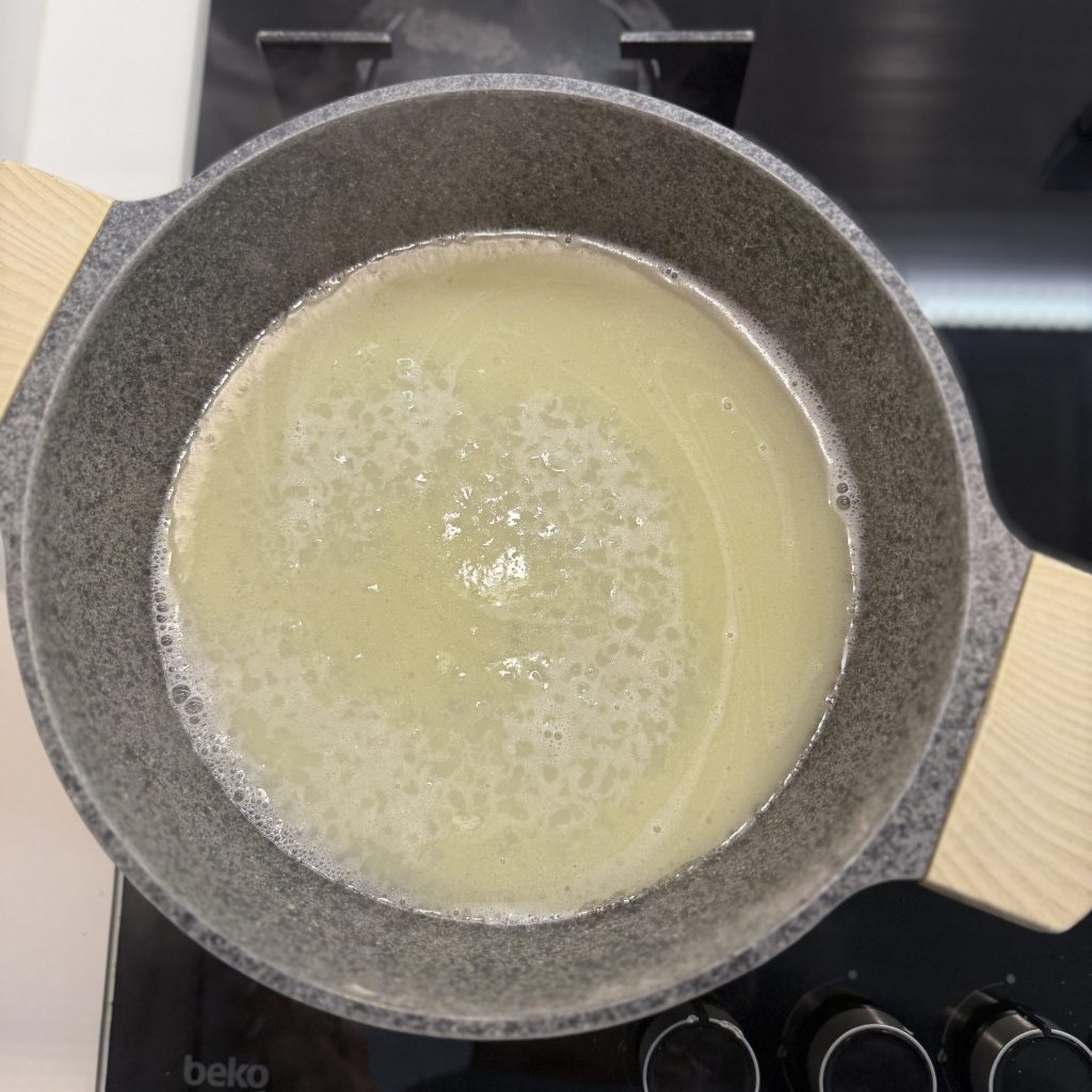 Allumez le feu et laissez fondre complètement le beurre et le sel.