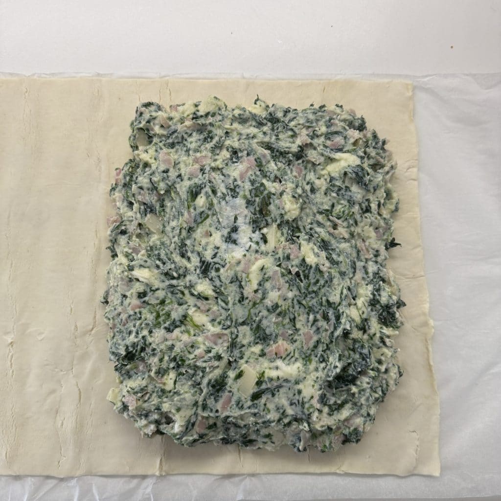 Préparation de la quiche feuilletée à la ricotta et aux épinards