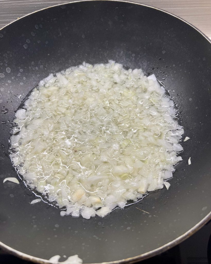 Faites-le cuire à feu doux jusqu’à ce qu’il soit tendre. Il faudra environ 5-6 minutes. Il ne doit pas brunir.