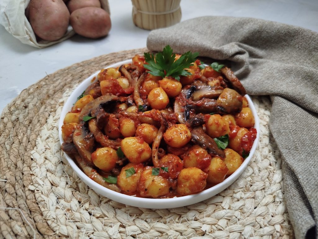Aujourd’hui, j’ai décidé de préparer les gnocchi à la campagnola, de simples gnocchi avec une sauce aux champignons mélangés. Un premier plat qui sera apprécié par toute la famille.