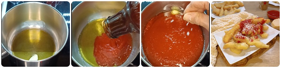 Faites blondir à feu doux une gousse d’ail avec de l’huile d’olive extra vierge.