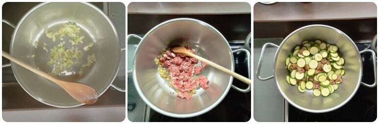 Lavez les courgettes, coupez-les en deux dans le sens de la longueur puis découpez des tranches fines et mettez-les dans un bol de côté.