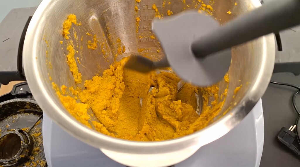 Après la cuisson, hache le tout pendant 1 minute à vitesse 10, en rassemblant le mélange au fond.