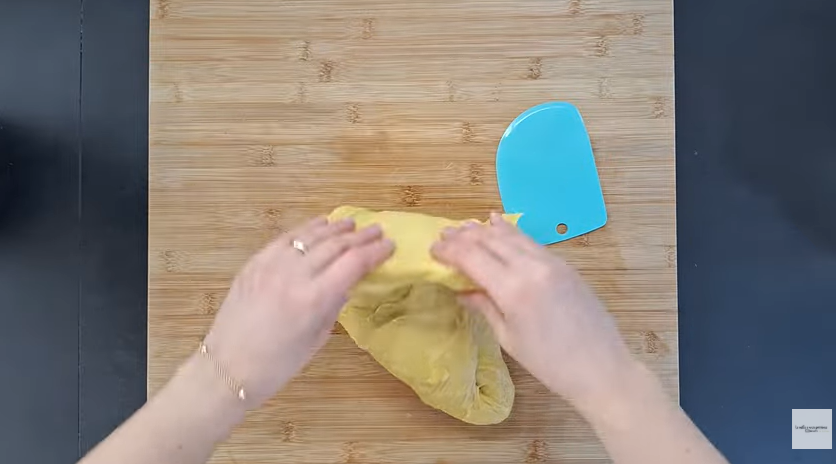 Effectuez quelques pliages de renforcement en essayant d’élargir la pâte, puis en prenant les côtés et en les ramenant au centre, puis procédez à la mise en boule en faisant pivoter latéralement la pâte.