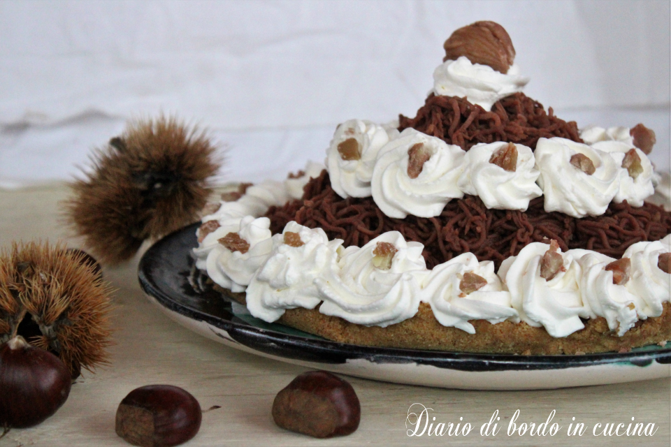 Le Mont-Blanc, ou Montblanc est un excellent semifreddo de la saison automnale, ses ingrédients principaux sont : les châtaignes, la crème et le cacao. À ces saveurs, vous devez ajouter l’arôme inimitable du rhum, de plus dans ma recette, j’ai apporté une revisite. J’ai accommodé le montblanc sur une délicieuse base croquante, la base classique pour cheesecake. Essayez ma version, pas très différente de l’original, mais plus encline à ma gourmandise !