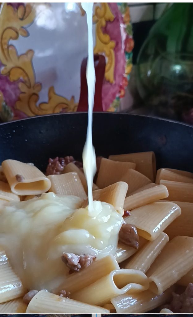 Paccheri avec crème de pommes de terre, saucisse et champignons