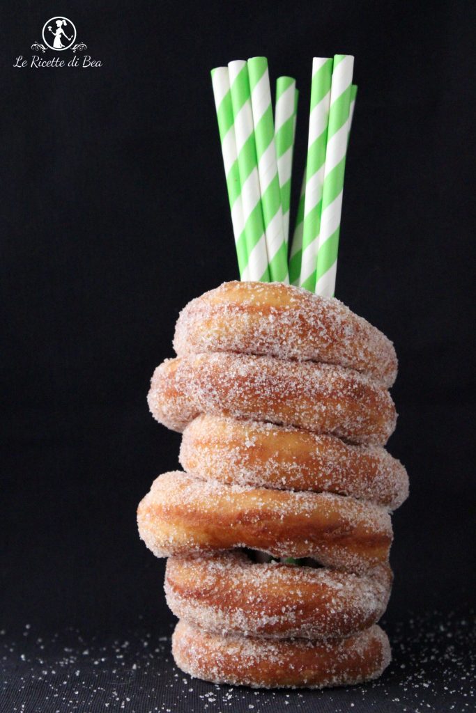 Conseils anti-gaspillage: ne jetez pas les restes. Les petits cercles centraux découpés des trous des beignets, je les ai frits pour obtenir des petites bombes super gourmandes et moelleuses. Je n’aime pas le gaspillage, alors j’ai aussi utilisé les restes en les retravaillant pour former une boule avec mes mains et en l’étendant à nouveau pour créer d’autres beignets. De cette façon, j’ai utilisé toute la pâte créée et j’ai obtenu 20 beignets pas trop grands.