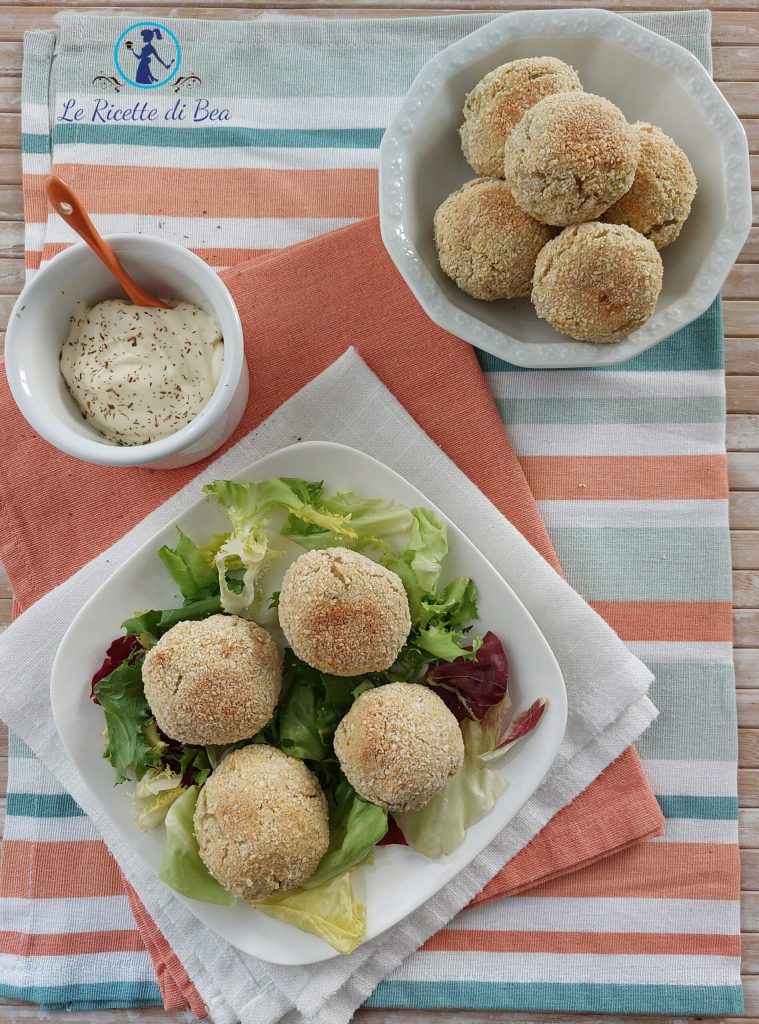 Mélangeons avec les mains les pommes de terre avec les épices et commençons à former des boulettes, bien rondes et de même taille. Si vous le souhaitez, vous pouvez également vous huiler les mains avec un peu d’huile de graines. Passons ensuite la boulette de pomme de terre d’abord dans l’œuf battu puis dans le petit bol avec la chapelure. Plaçons au fur et à mesure les boulettes avec pommes de terre panées sur la plaque du four. Bien espacées entre elles, nous devrons ensuite les retourner et éviter qu’elles ne se touchent pendant la cuisson au four.