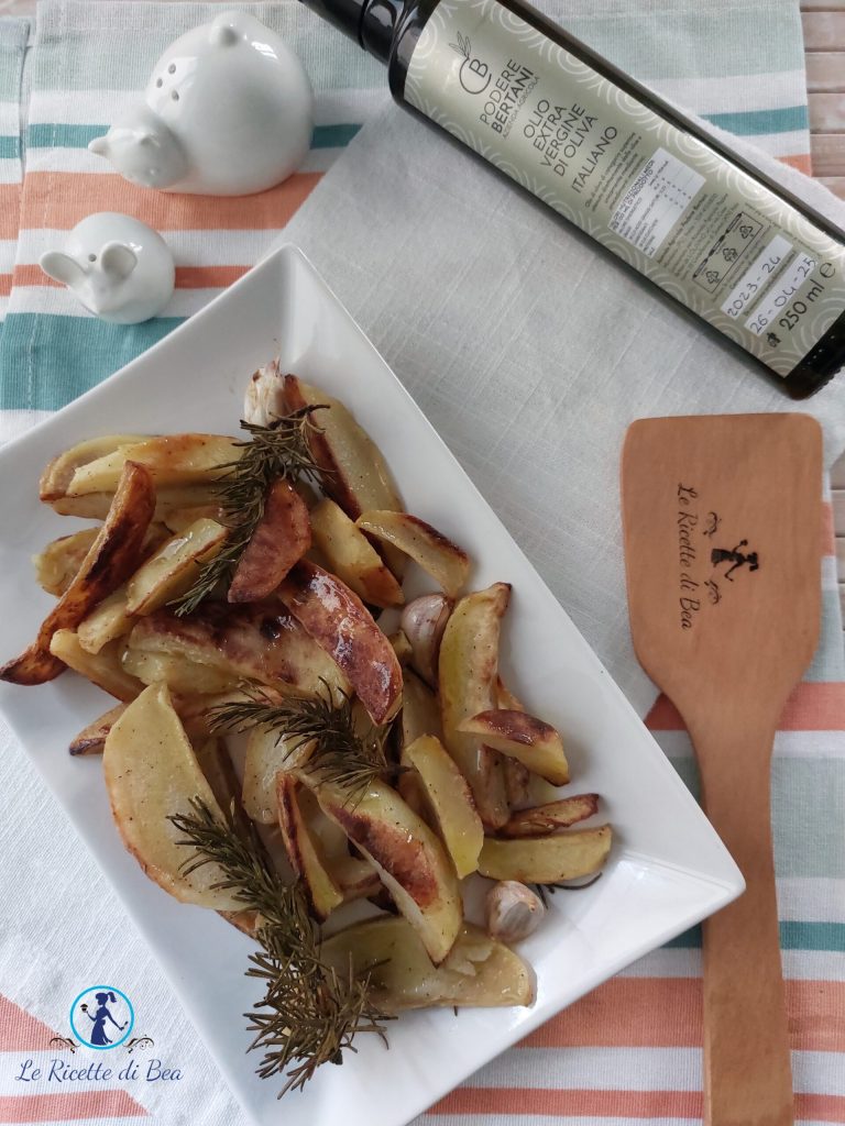 En effet, ce plat d’accompagnement de pommes de terre est l’un des plus célèbres au monde, je dirais plus ou moins comme la salade, non? Facile, polyvalent, économique et toujours délicieux! Difficile de se tromper, même si quelques pièges ou embûches se cachent aussi dans ce plat. Ma mère et mes deux grands-mères, et je vous le recommande aussi, soulignent que le sel doit être ajouté uniquement pendant les dernières minutes de cuisson. Cela évitera aux pommes de terre de ramollir et de perdre la croûte tant aimée qu’elles doivent avoir. Il ne faut pas exagérer avec la quantité d’ail et surtout avec l’huile d’olive extra vierge.