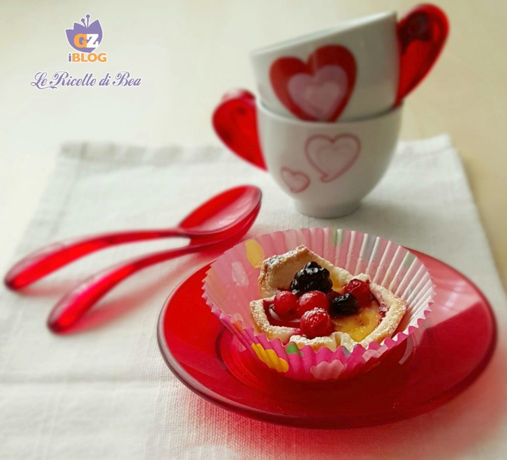 Ces Tartelettes de pâte sablée avec crème et fruits des bois ont une longue histoire derrière elles et je vais tout de suite vous expliquer pourquoi : j’ai préparé cette délicieuse et fascinante petite douceur pour la première fois en 2012 chez mon ex avec sa maman, puis je ne les ai plus préparées car elles demandent un calme et une précision que je n’ai pas, beaucoup d’entre vous me connaissent et peuvent comprendre. Mais aujourd’hui est un jour important et ces Tartelettes de pâte sablée avec crème et fruits des bois peuvent être le couronnement d’un rêve, le rêve de ma chère et douce amie Alessia qui va bientôt devenir Maman! La petite Ginevra aura une maman douce comme la crème et tendre comme la pâte sablée, un peu de l’acidité des fruits des bois sera ajouté par la tante Bea!