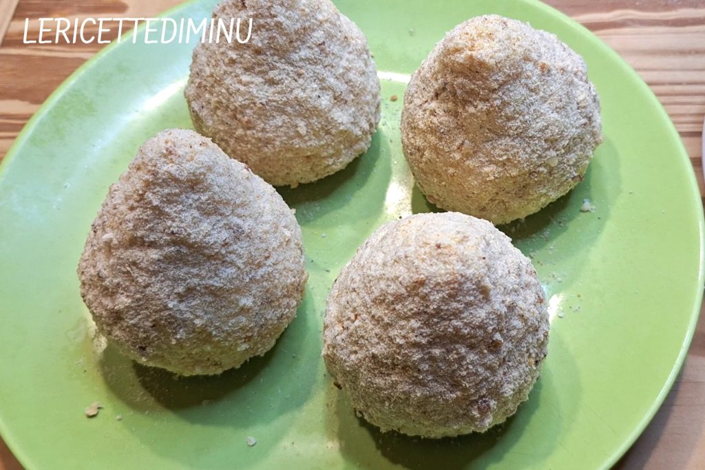 Rouler dans la pâte puis dans la chapelure. Bien compacter l’arancino après chacune de ces deux étapes.