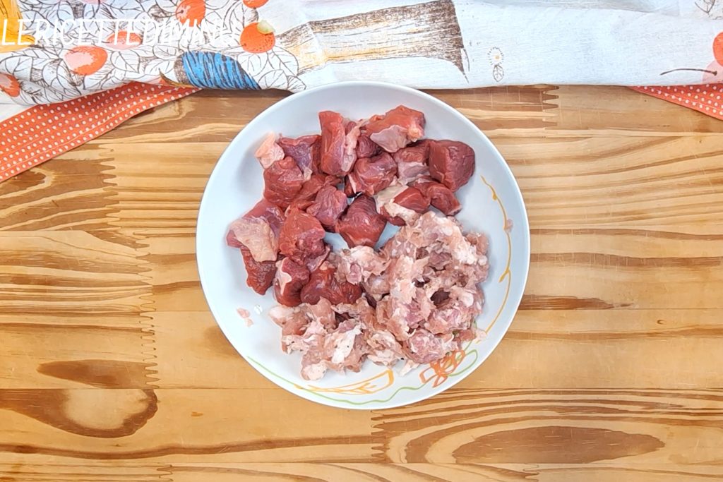 - 350 g viande bovine (en morceaux pas trop maigre)