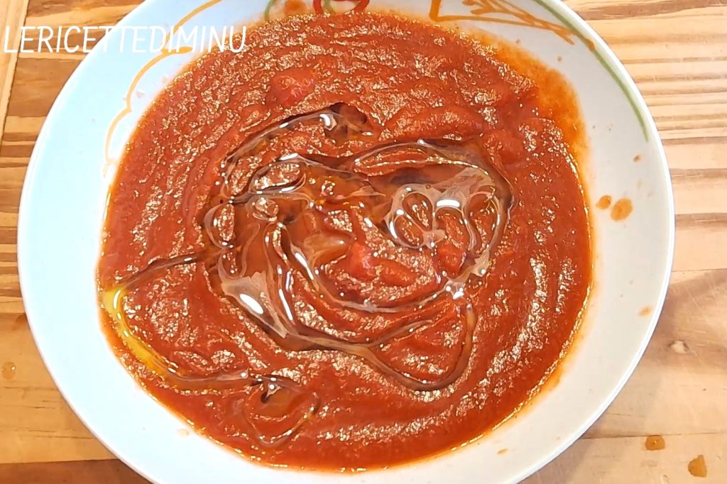 Après environ 20 minutes, lorsque la sauce est cuite et épaisse, éteindre le feu et ajouter de l’huile d’olive extra vierge.