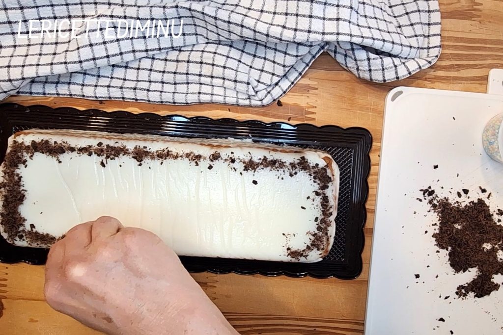 Une fois totalement refroidi, transférer le moule avec le dessert au réfrigérateur pour au moins deux heures.