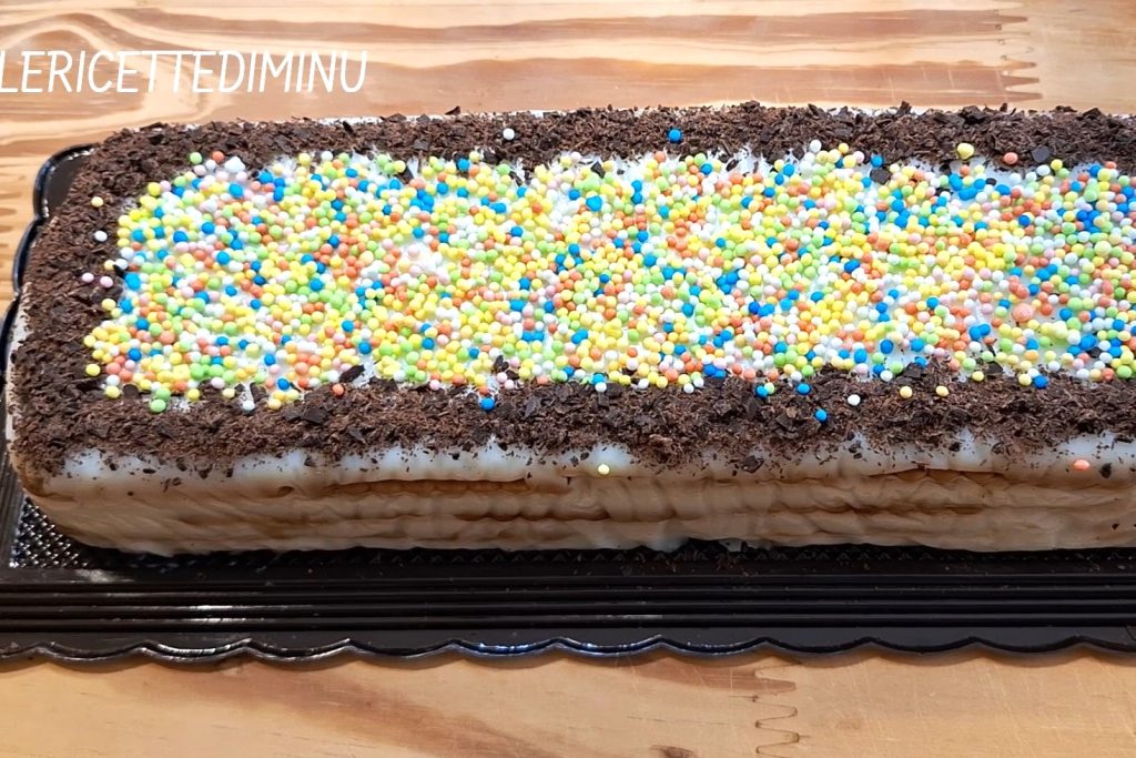 Pour décorer le dessert, des éclats de chocolat noir et une pluie de vermicelles colorés, souvent utilisés pour rendre les desserts traditionnels siciliens encore plus festifs.