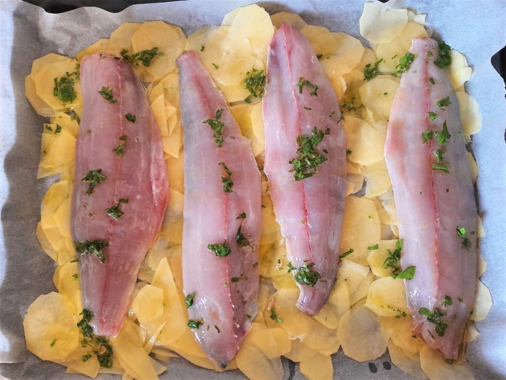 Coryphène ou dorade au four avec pommes de terre