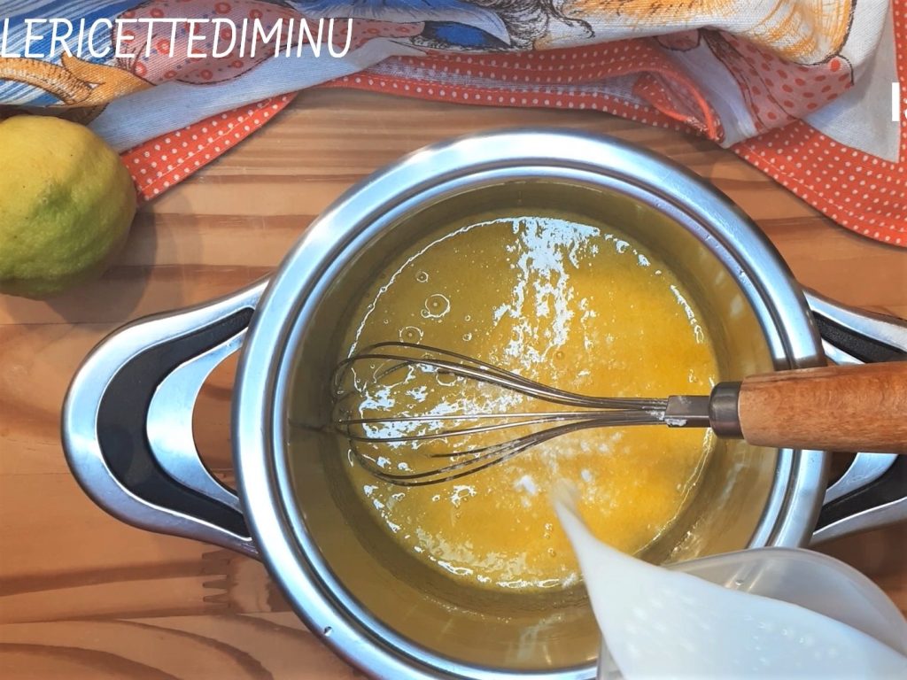 • Parfumez avec le zeste de citron non traité coupé en ruban (en évitant la partie blanche qui donnerait un goût amer) et portez sur le feu.