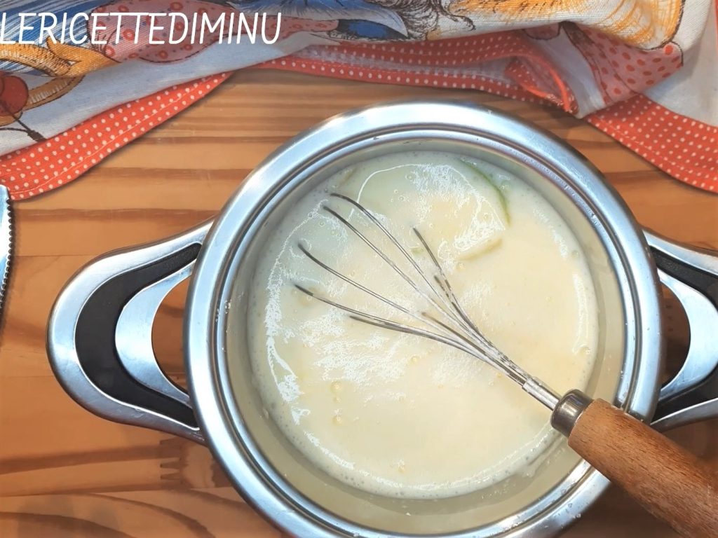 • Suite à cela, versez l’amidon dans la petite casserole et après l’avoir incorporé, ajoutez le reste du lait.