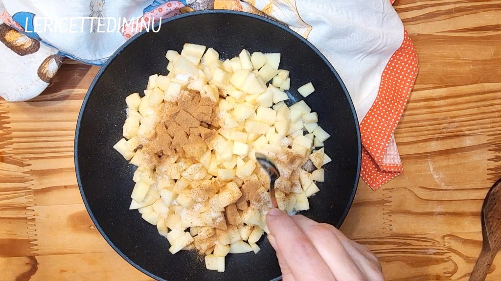 J’aime réaliser ce dessert avec de la farine complète, dans ce cas de l’épeautre complet, car de cette façon j’obtiens une coque extérieure non seulement croustillante, mais aussi plus consistante qui se marie parfaitement au moelleux et délicat fourrage de pommes.