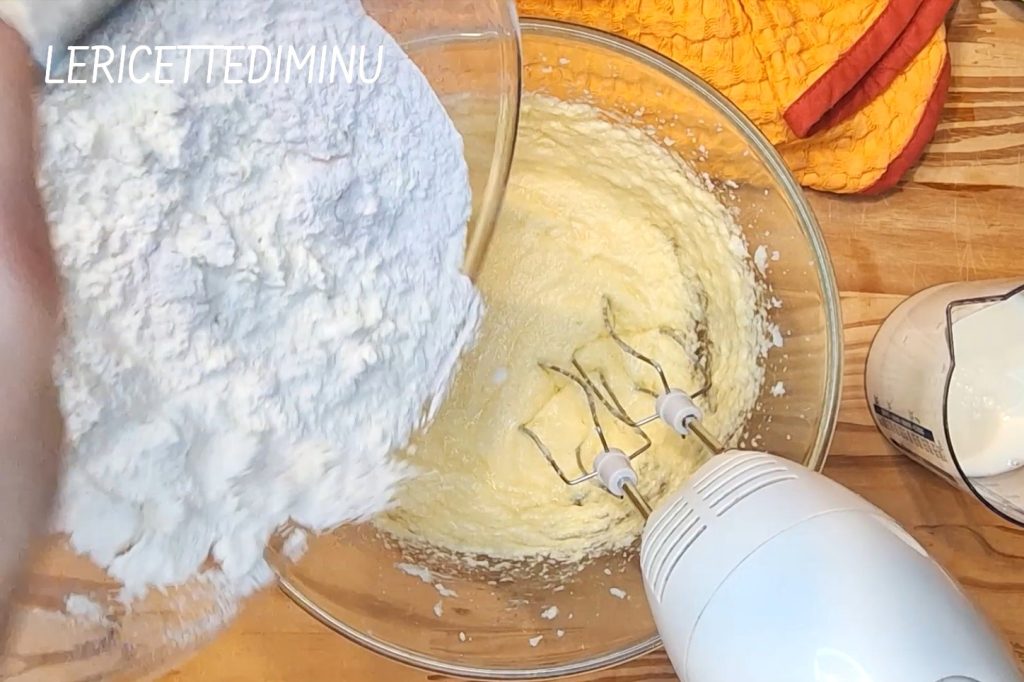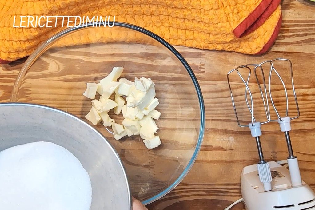 • Dans un grand bol, travailler avec le fouet électrique le beurre avec le sucre.