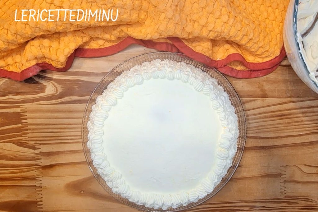 À l’approche du moment où nous retirerons le dessert du réfrigérateur, réalisez la couverture de crème et limoncello.