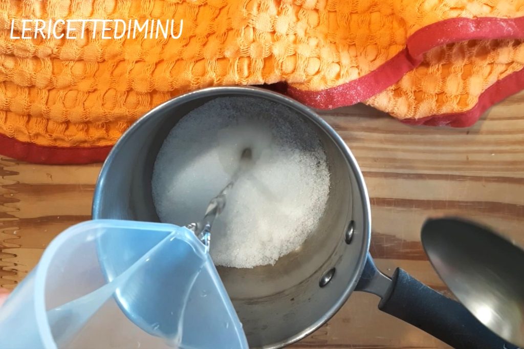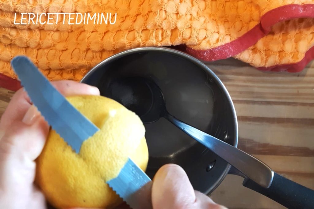 Pour préparer le sirop au limoncello, mettez sur le feu le sucre avec l’eau et des bandes de zeste de citron non traité.