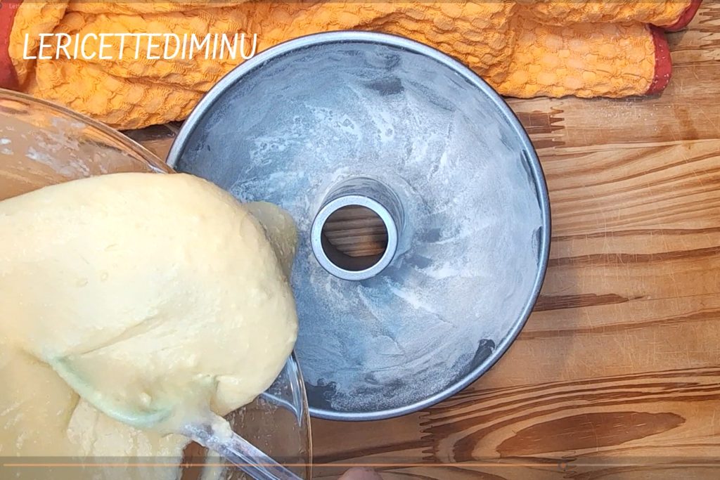 • Dans le moule préalablement beurré et fariné, verser environ la moitié de la pâte.
