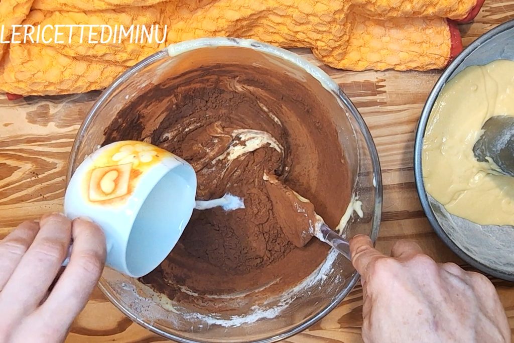 On le réalise en partant d’une seule pâte, dont la moitié sera ensuite enrichie de cacao.
