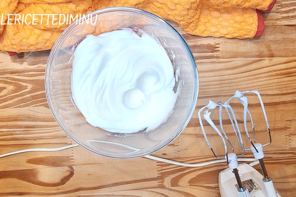 • Séparer les jaunes des blancs d’œufs et avec les fouets électriques, monter ces derniers en neige avec une pincée de sel.