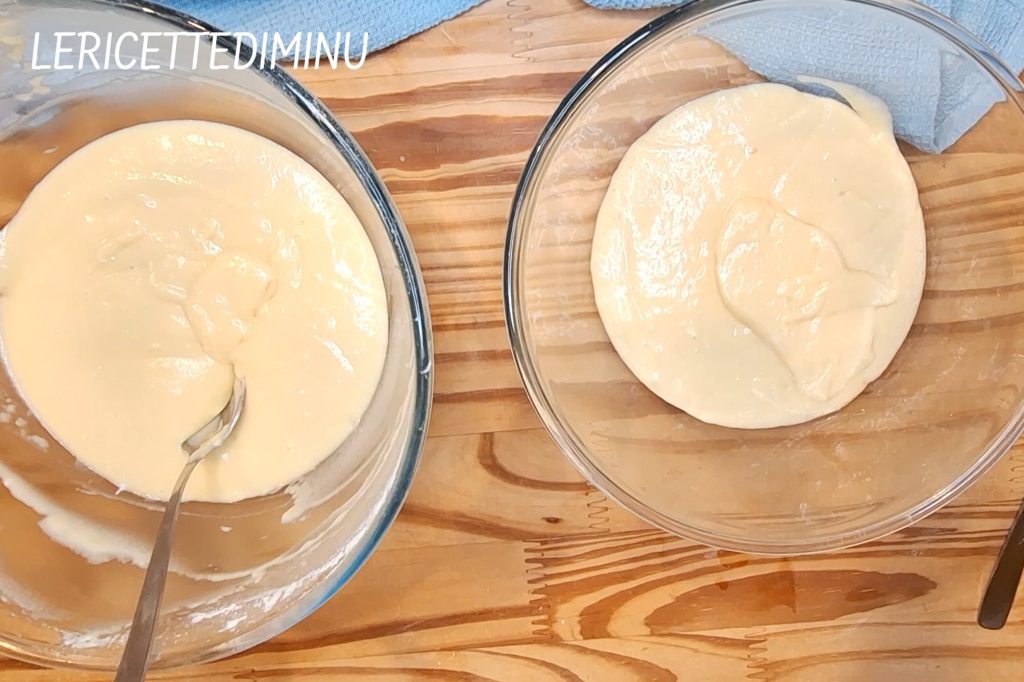 Dans l’un des deux, ajouter le cacao travaillé à part avec 1 cuillère à café de sucre et autant de lait que nécessaire pour obtenir un mélange similaire en densité à la pâte.
