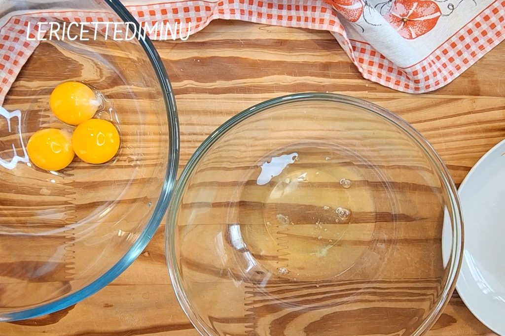 Dans un autre récipient, travailler les jaunes avec le sucre jusqu’à obtenir un mélange clair.