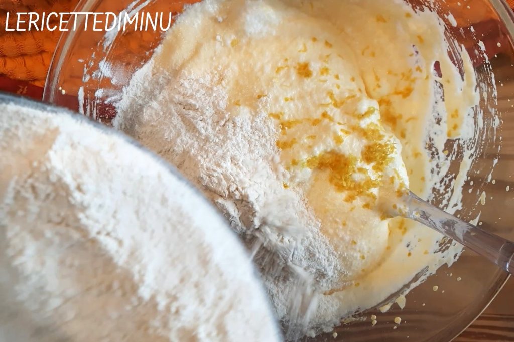 Ajouter un sachet de vanilline, le zeste râpé d’un citron non traité et enfin, la farine en plusieurs fois.