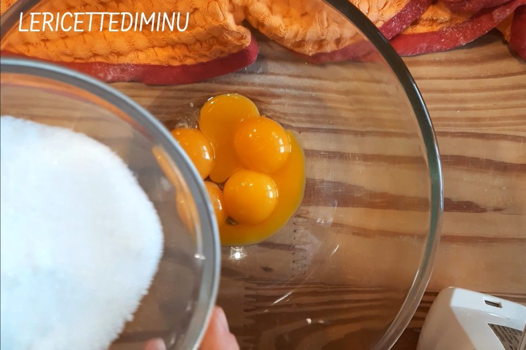 Travailler les jaunes avec le sucre pendant au moins 15 minutes avec les fouets électriques ou un robot pâtissier. Je recommande de ne pas réduire les temps indiqués.