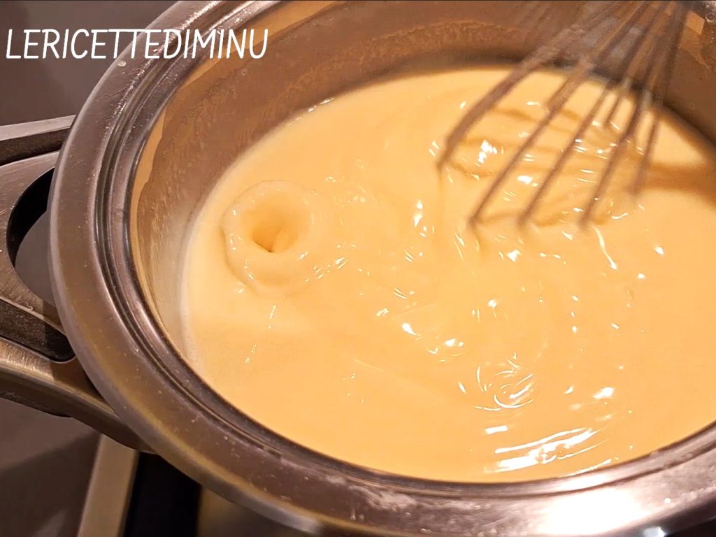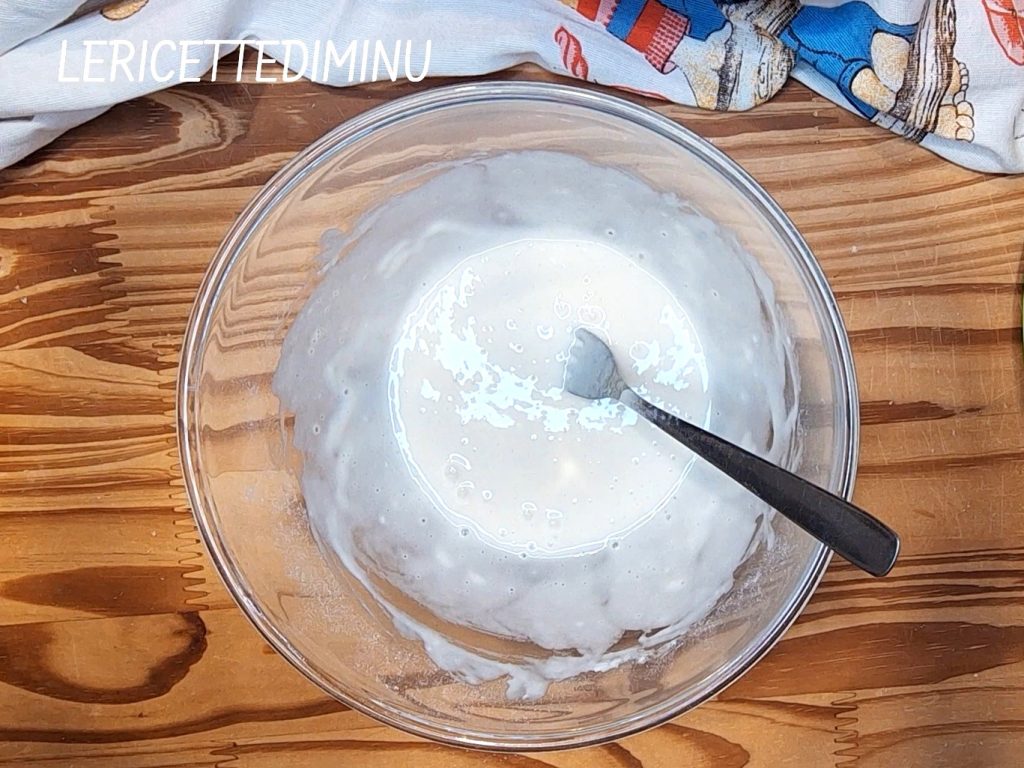 • Ajouter ensuite progressivement les 50 grammes d’amidon et l’incorporer au mélange en ajoutant petit à petit les 600 ml de lait