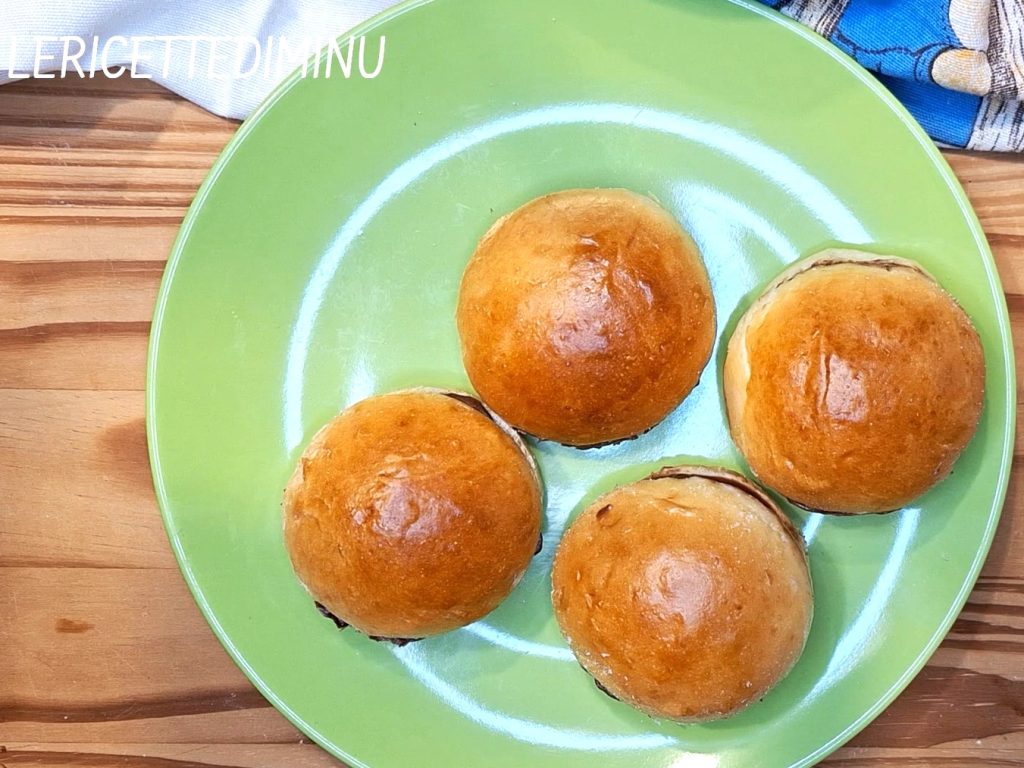 • Pour commencer, de préférence avec un couteau à pain, couper en deux les petits pains au lait (pour la recette cliquez ici) et retirer la mie à la fois de la partie supérieure et de la partie inférieure.