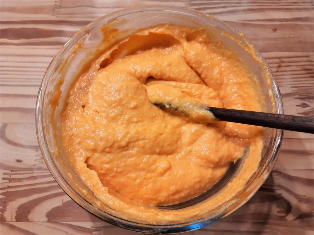 À ce stade, transférer la béchamel dans un grand bol avec la citrouille cuite au four et mixer avec un mixeur à immersion.